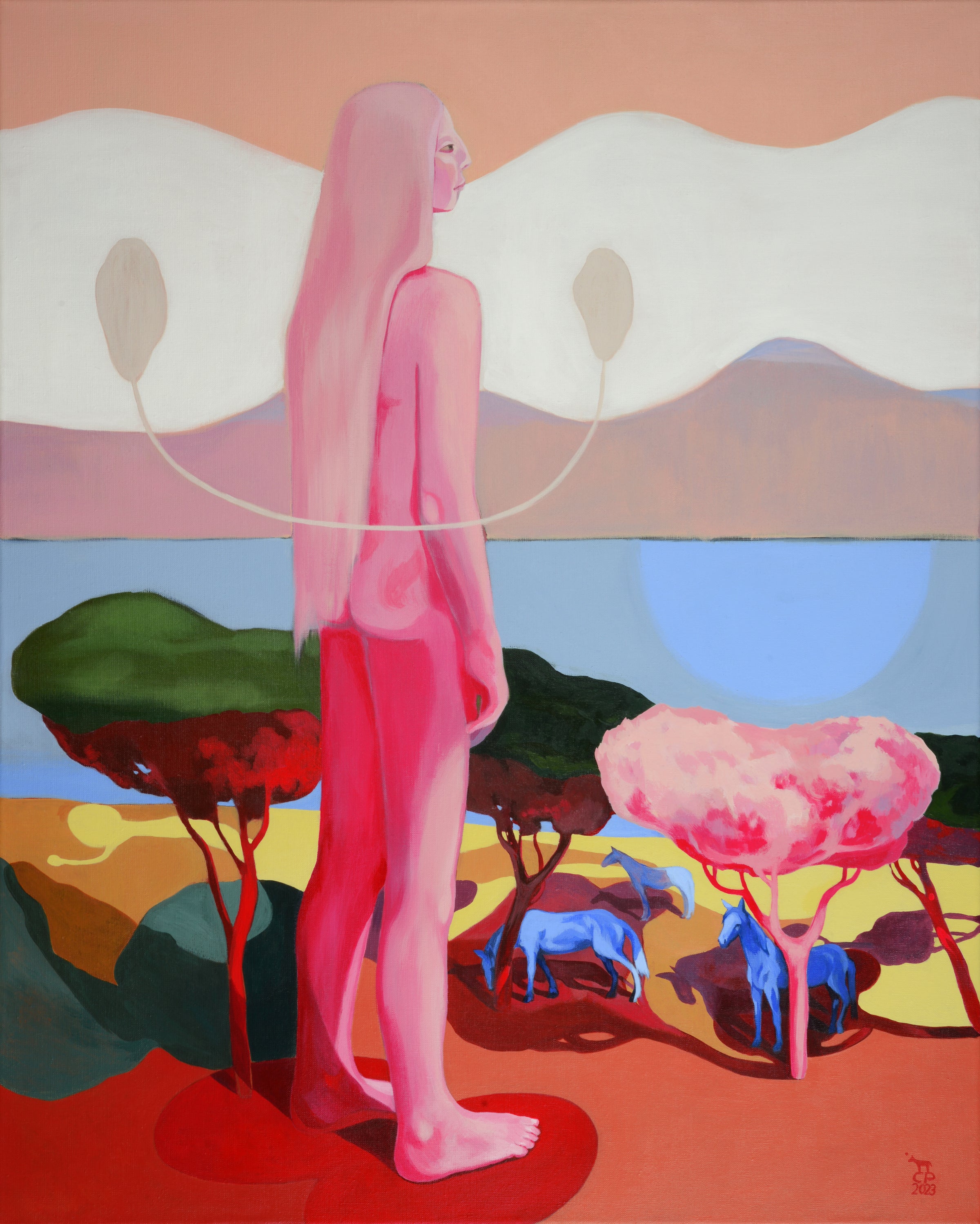 'Something inside me looks at the sea and everything else too', Claudia Pollack, 2023, acrylic on linen, 80 x 100 cm