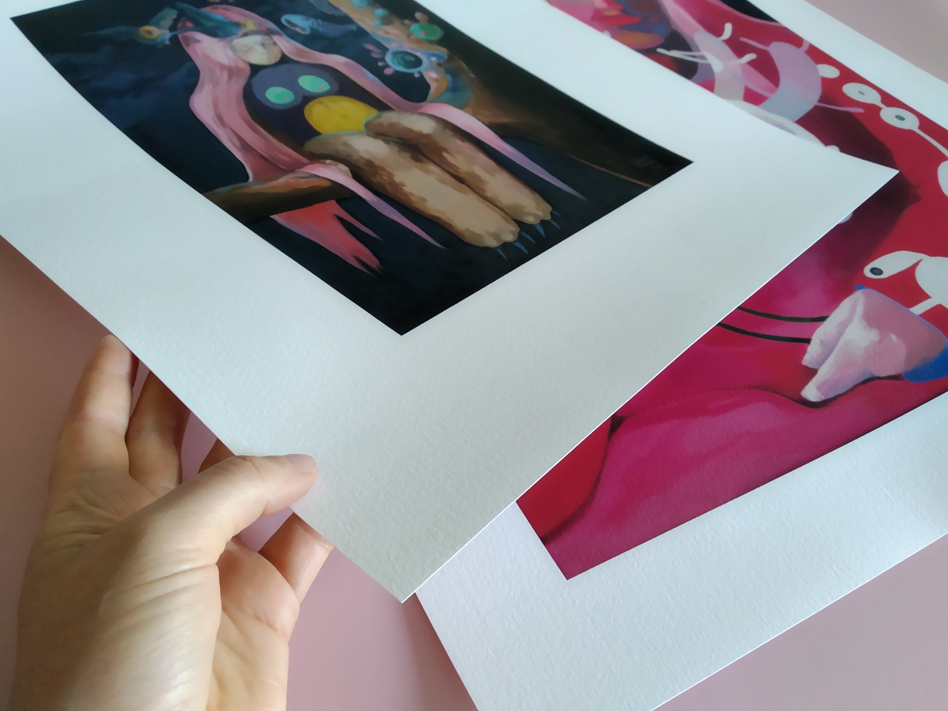 sind hochwertige Drucke auf einem matten, leinwandähnlichen Gewebe. Durch meine Nachbearbeitung mit Farbe und die Versiegelung mit Firnis, erhalten sie Textur und noch mehr Strahlkraft. Fast wie ein Original.