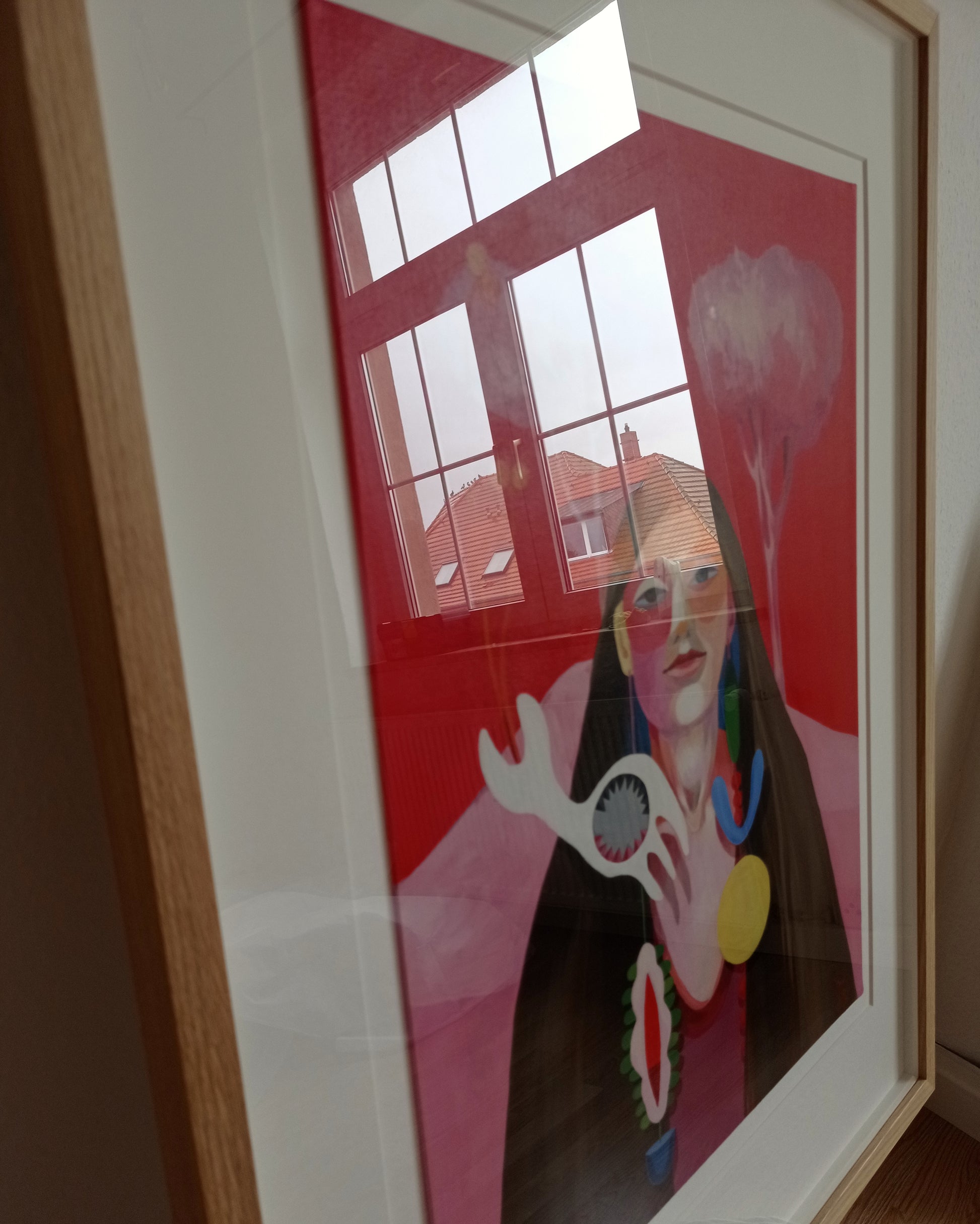 - mit maßgefertigtem Rahmen Eiche (70 x 90 cm) und Passepartout