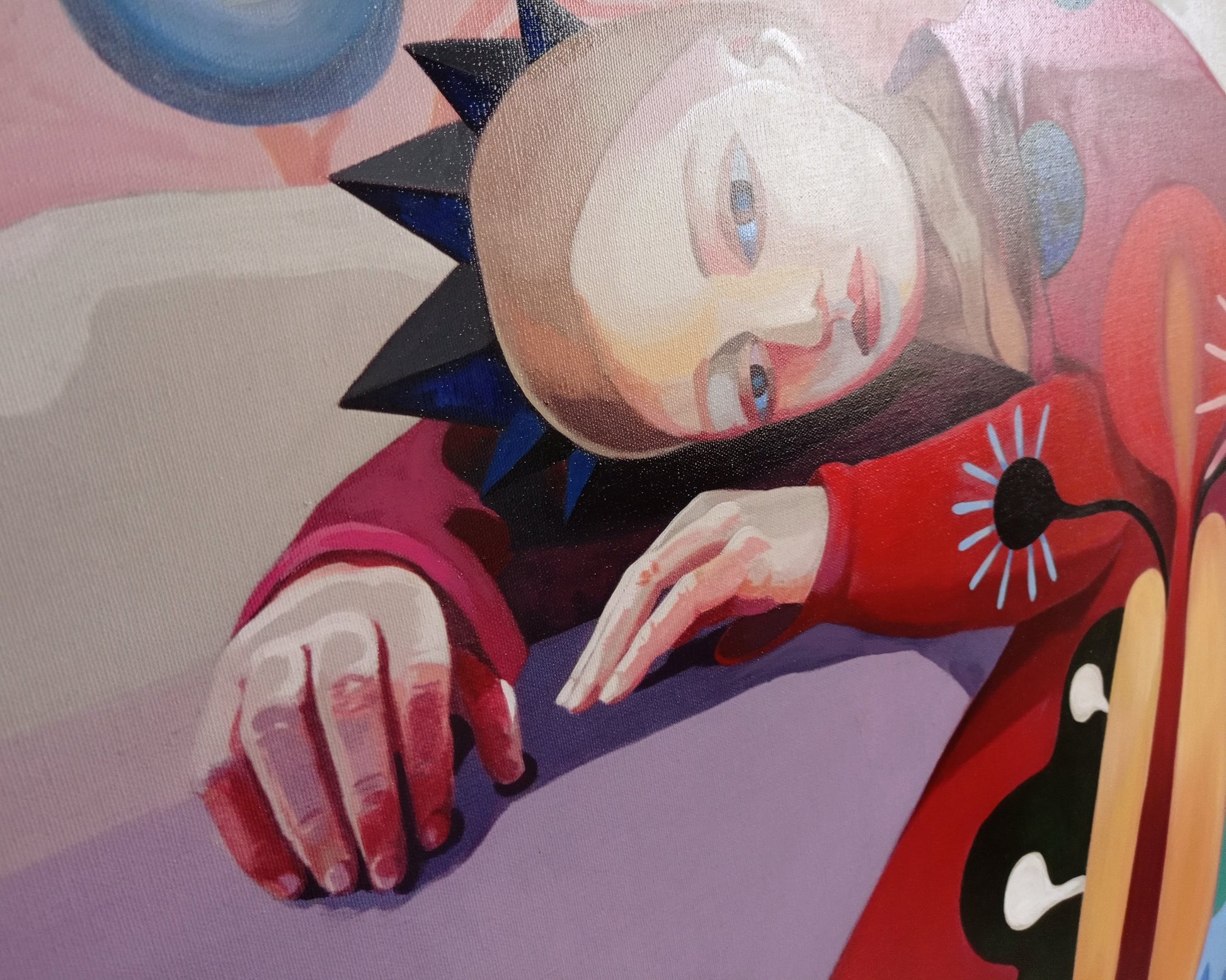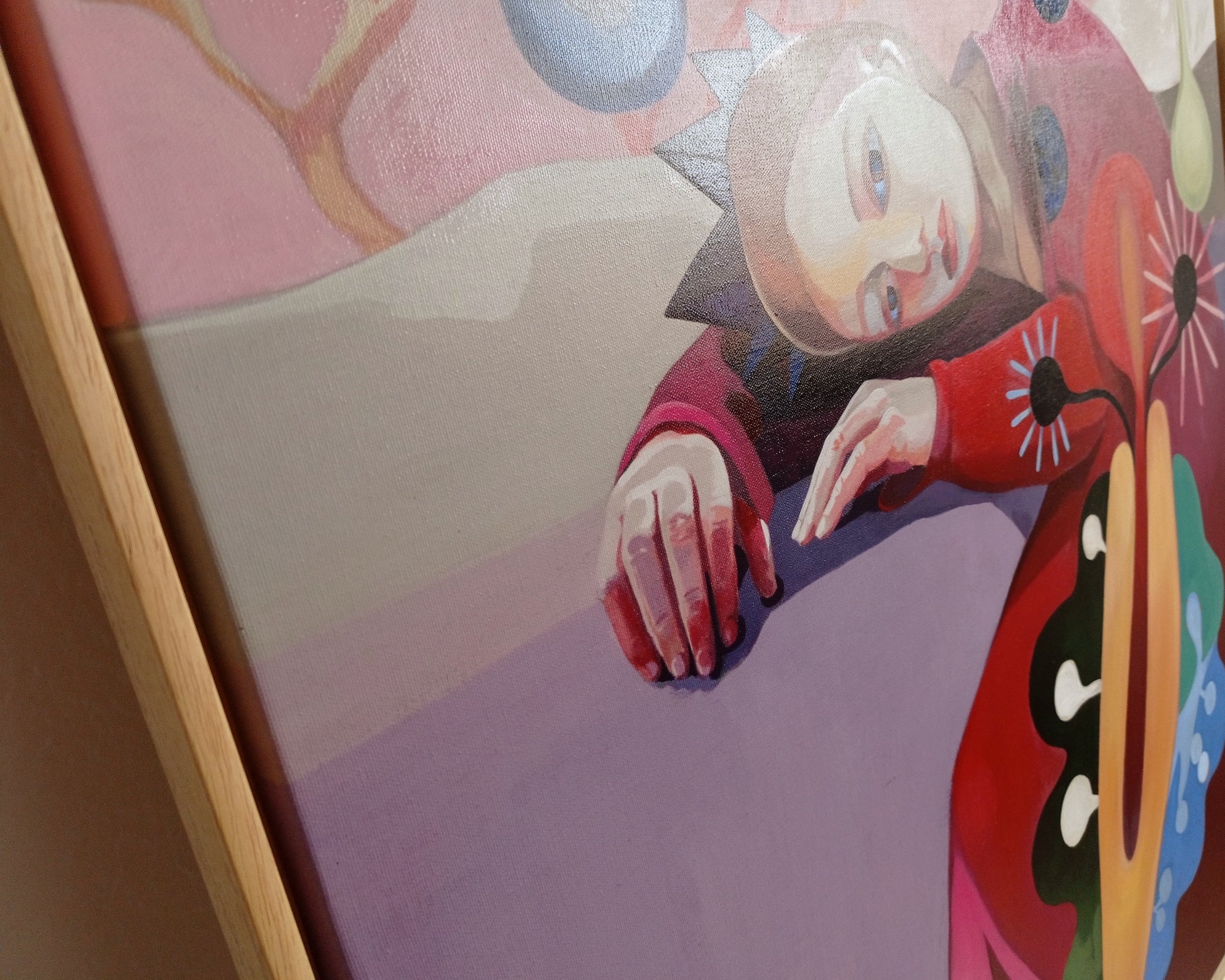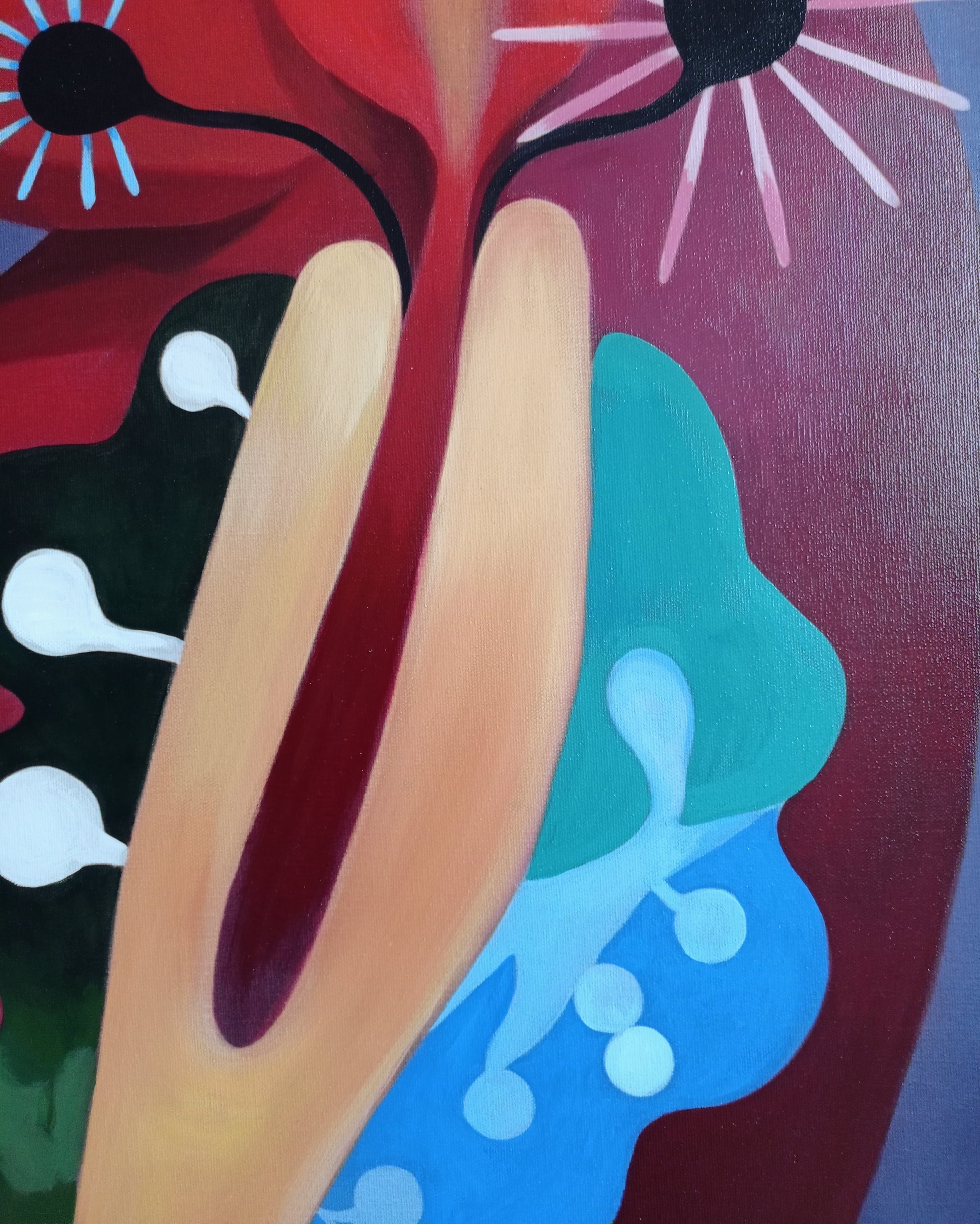 Ich habe noch einmal Hand angelegt und bin mit meinem Pinsel über die Leinwand gegangen. Habe hier und da die Farben intensiviert und Konturen gesetzt wo es mir nötig schien.