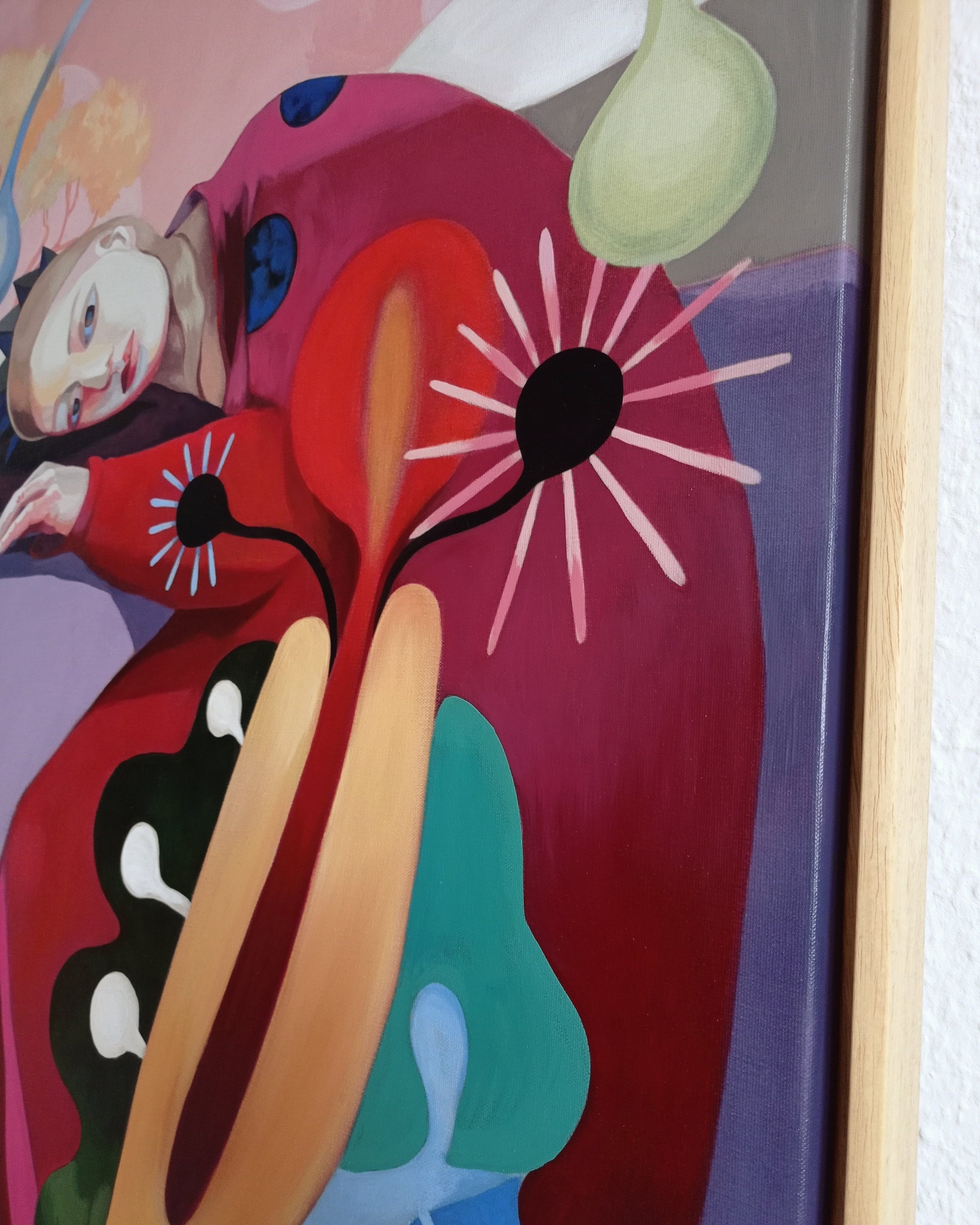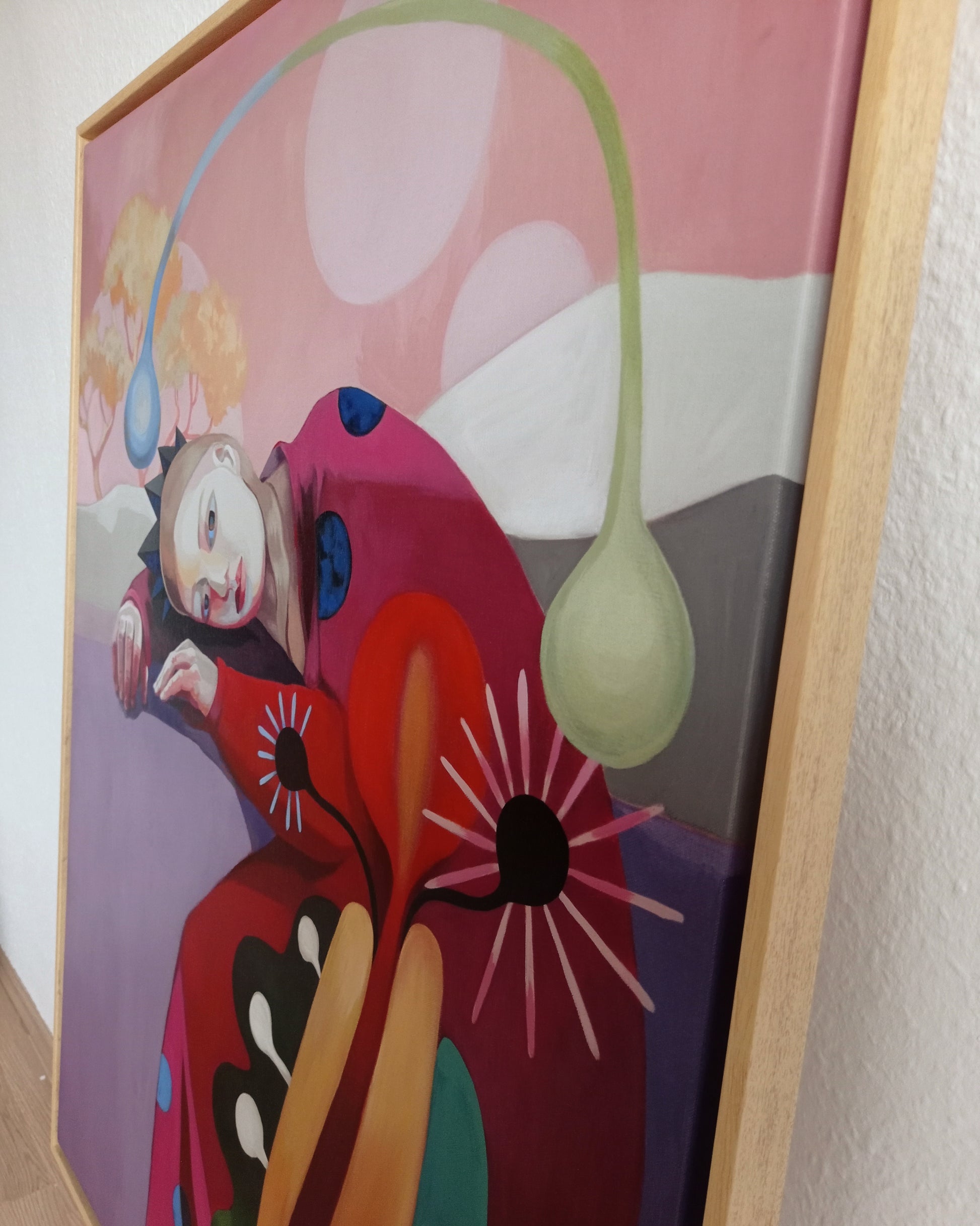 Ich habe mir erlaubt, zu malen, was in mir war. Ich habe mir erlaubt, nicht vorschnell abzuurteilen, sondern interressiert dabei zu bleiben. Ich bin der Freude an den Formen und Farben gefolgt. Ich habe mich verliebt in die Erschöpfung dieser Figur und der inne liegenden Schönheit. Ich habe nicht geplant, dass dabei so viel Stärke zum Vorschein kommt. Ich habe mich ergeben.